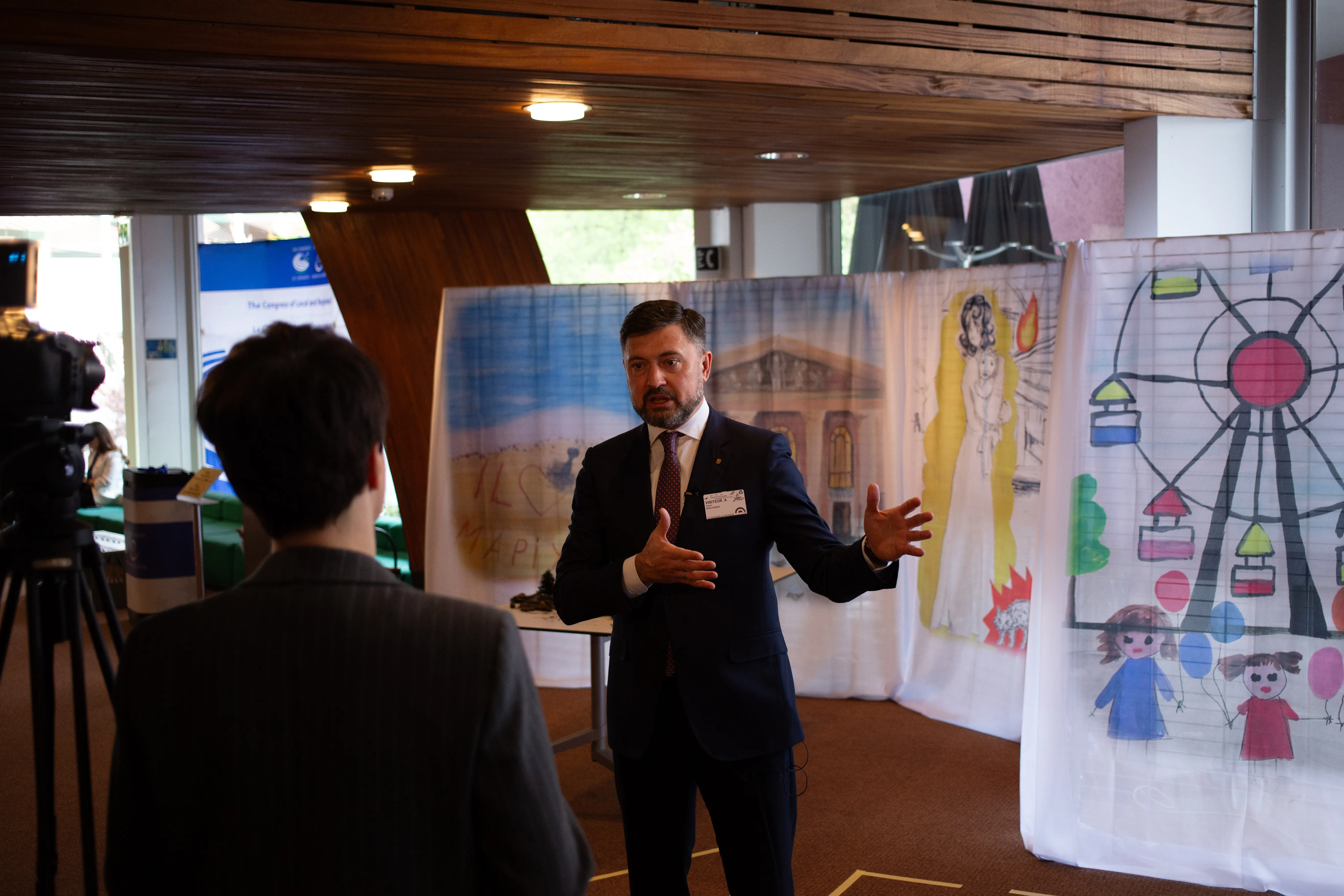 У стінах найвищих офіційних будівель художня експозиція працює інакше, ніж в музеї. Вона входить у простір політичної та юридичної розмови — нагадування про злочини, відповідальність і рішення, які мають бути прийняті за жорстоке руйнування міста у 21 столітті у центрі Європи.